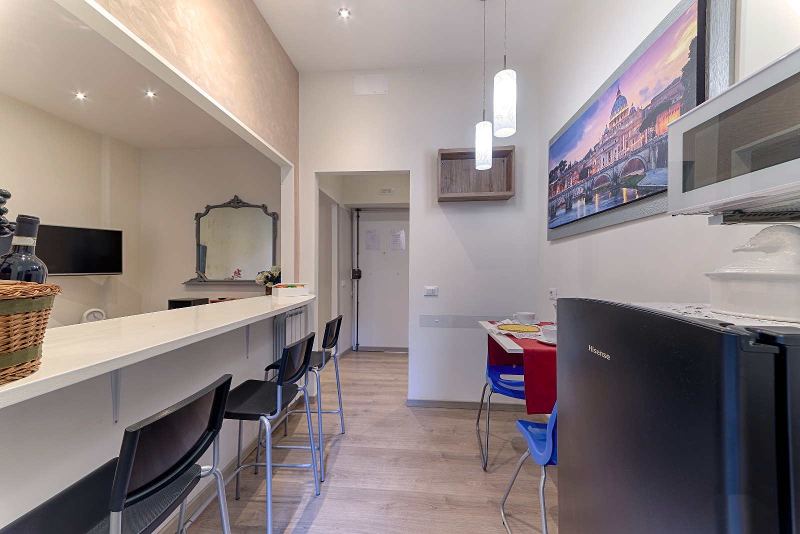 Delizioso monolocale appena restaurato e dotato di ogni confort per trascorrere una piacevole vacanza Romana. La struttura è dotata di un soggiorno con un comodo letto matrimoniale, un bagno con ampia doccia, un angolo cottura dotato di tutto l'occorrente per preparare un comodo pranzo o cena. Tutti i comfort quali aria condizionata, TV Led, connessione internet. La zona è ottimamente servita da tutto quanto occorrente per un comodo trasferimento per il centro storico grazie ai numerosi collegamenti autobus.