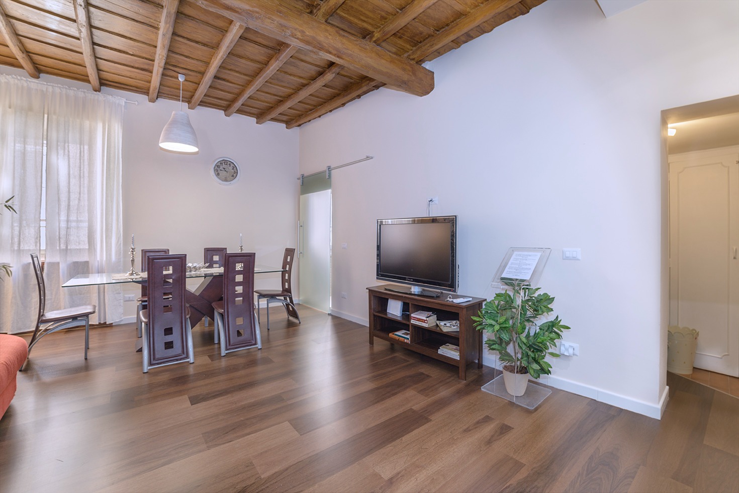 Situata nel quartiere Trionfale, a pochi passi dalle Mura Vaticane, Magic Rome House è una struttura ampia (130 mq) ideale per soggiorni medio-lunghi. Dispone di un accogliente salone doppio con divano letto, postazione PC, sala lettura, sala da pranzo, cucina abitabile, bagno moderno e due camere da letto (matrimoniale e singola). L’appartamento è finemente ristrutturato, dotato di aria condizionata in ogni ambiente, WiFi veloce e un bagno completo di ampio box doccia e asciugacapelli. La posizione è perfetta per raggiungere a piedi San Pietro, Musei Vaticani, Prati, il Tevere e molte attrazioni del centro.