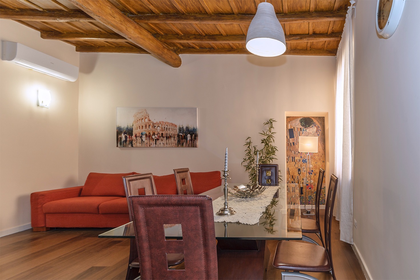 L'appartamento, situato in una zona strategica tra le Terme di Caracalla e il Circo Massimo. L'atmosfera accogliente è valorizzata dalla cura dei dettagli: la presenza di un angolo cottura ben attrezzato per garantire la massima autonomia, un soggiorno con divano letto, una camera da letto ed un bagno confortevole e la fornitura di biancheria di qualità. La connessione Wi-Fi gratuita e l'aria condizionata completano il pacchetto, rendendo il soggiorno ancora più piacevole e rilassante.