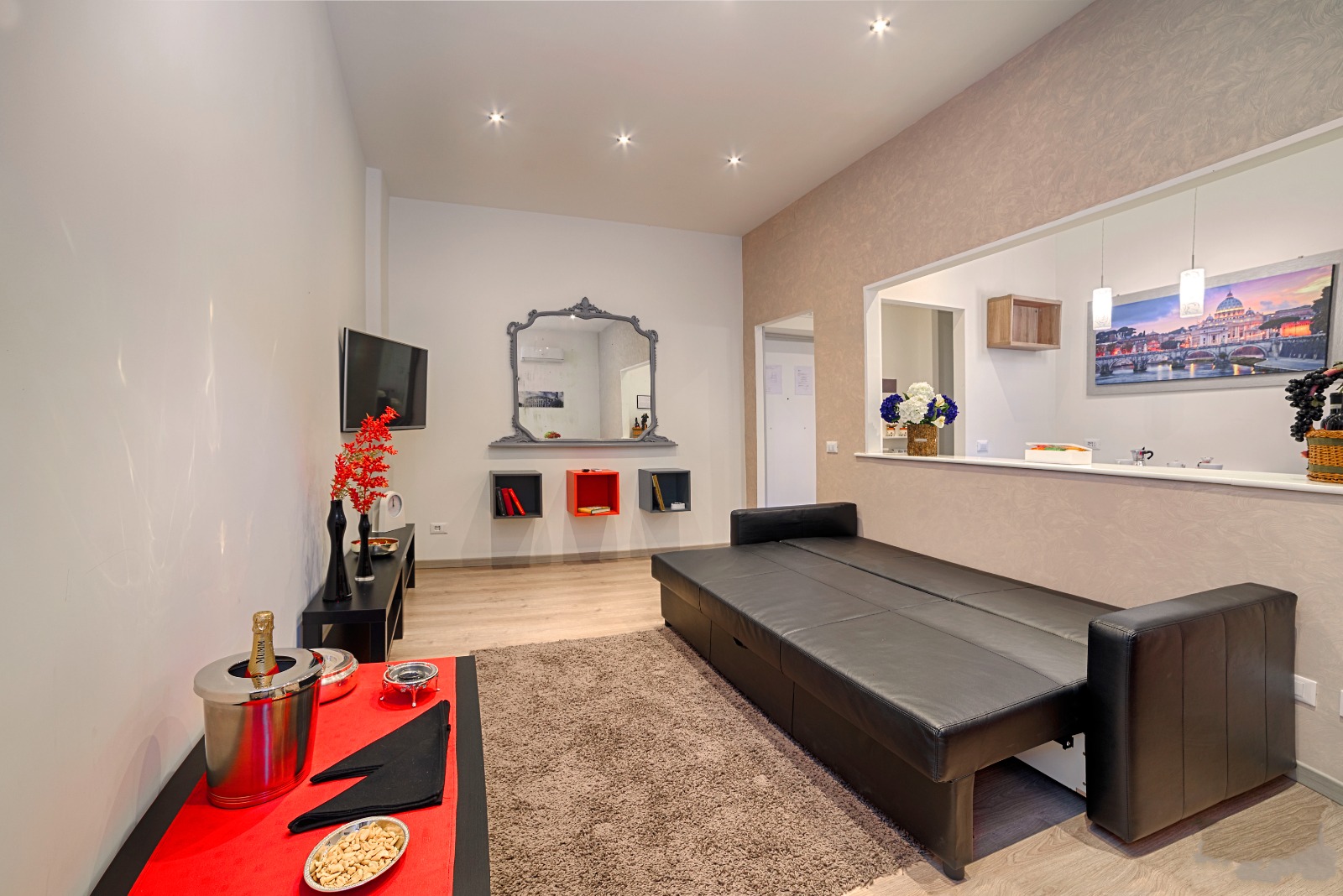 Situata nel quartiere Trionfale, a pochi passi dalle Mura Vaticane, Magic Rome House è una struttura ampia (130 mq) ideale per soggiorni medio-lunghi. Dispone di un accogliente salone doppio con divano letto, postazione PC, sala lettura, sala da pranzo, cucina abitabile, bagno moderno e due camere da letto (matrimoniale e singola). L’appartamento è finemente ristrutturato, dotato di aria condizionata in ogni ambiente, WiFi veloce e un bagno completo di ampio box doccia e asciugacapelli. La posizione è perfetta per raggiungere a piedi San Pietro, Musei Vaticani, Prati, il Tevere e molte attrazioni del centro.
